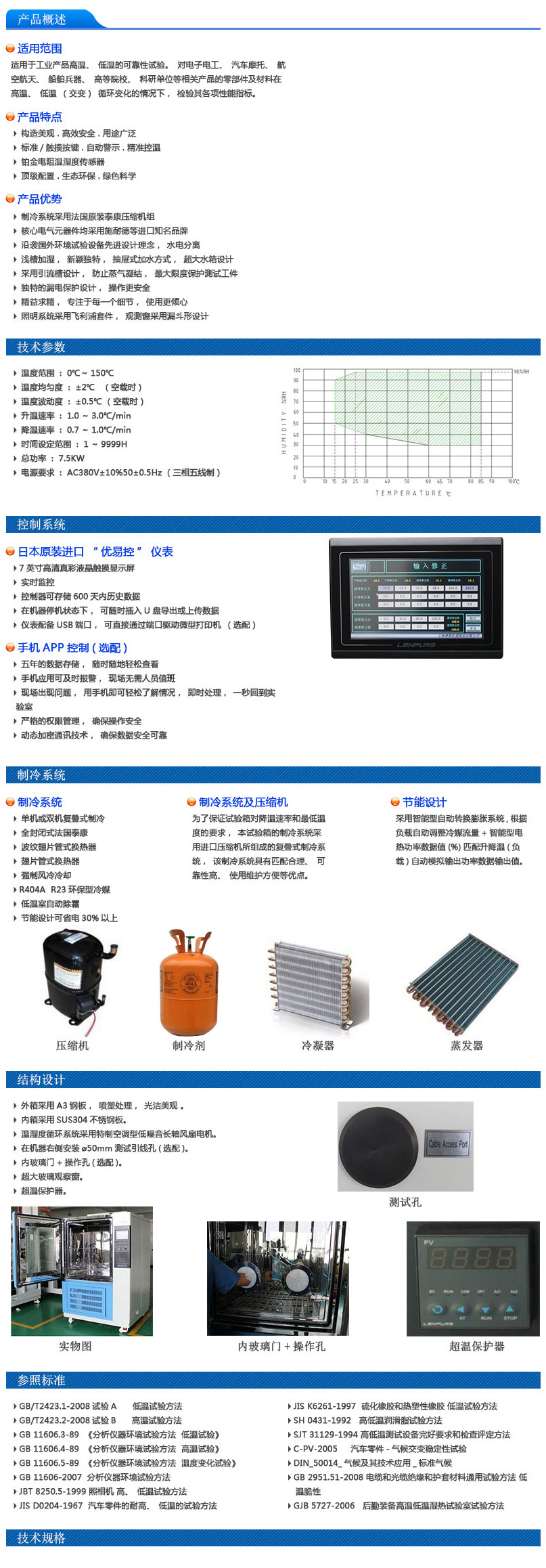 本類試驗箱符合國家標準GB11158《高溫試驗箱技術條件》,具體設備參數以技術協議為準。極寬的溫度控制范圍,可滿足GB/T2423《電工電子產品基本試驗規程》項的試驗要求。獨特的平恒調溫控制,可進行高精度,高穩定的溫度控制。